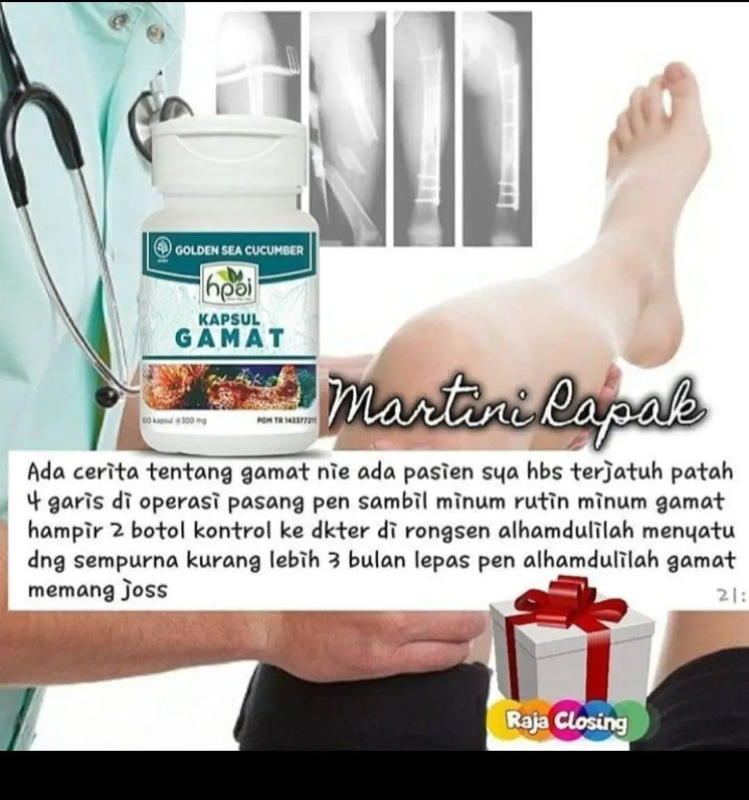 Kapsul Gamat HPAI mengandung gamat emas bermanfaat untuk atasi kolesterol tinggi, keropos tulang, luka, diabetes, sariawan, lancarkan darah, mencegah inflamasi.